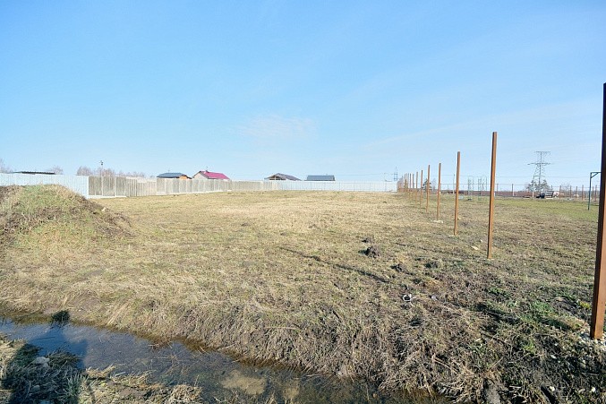 Участки правильной прямоугольной формы с естественным наклоном в сторону дороги. Соседи устанавливают заборы и возводят постройки.