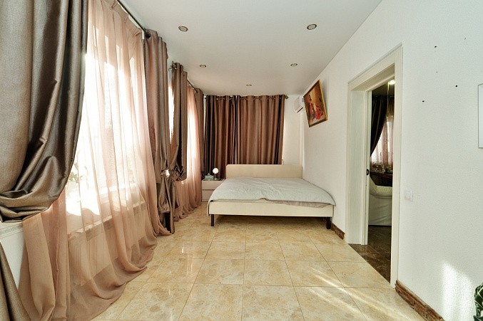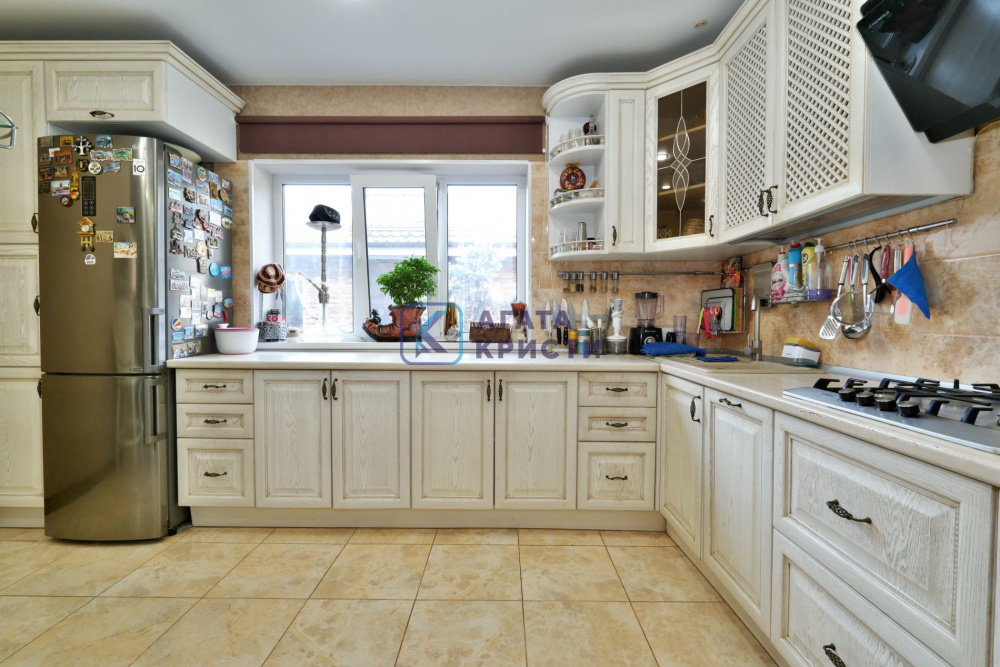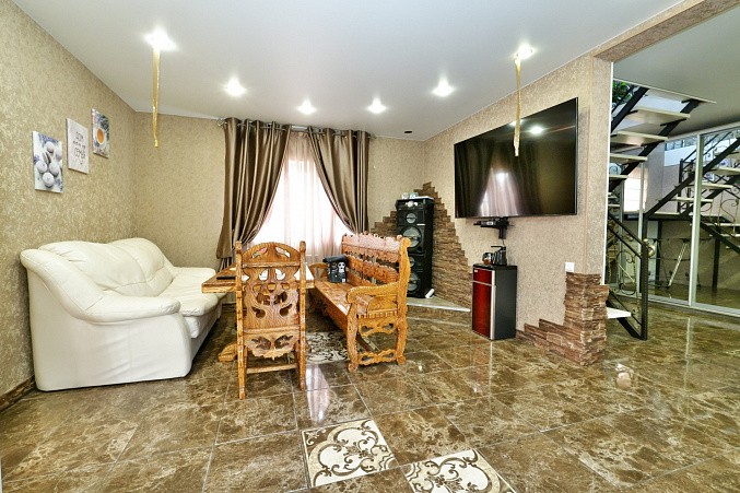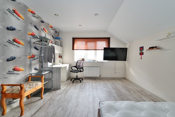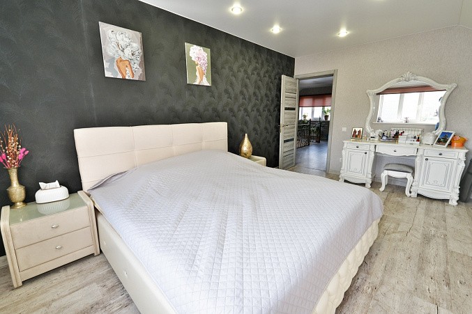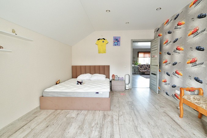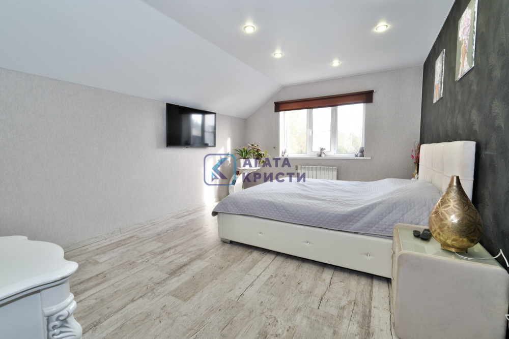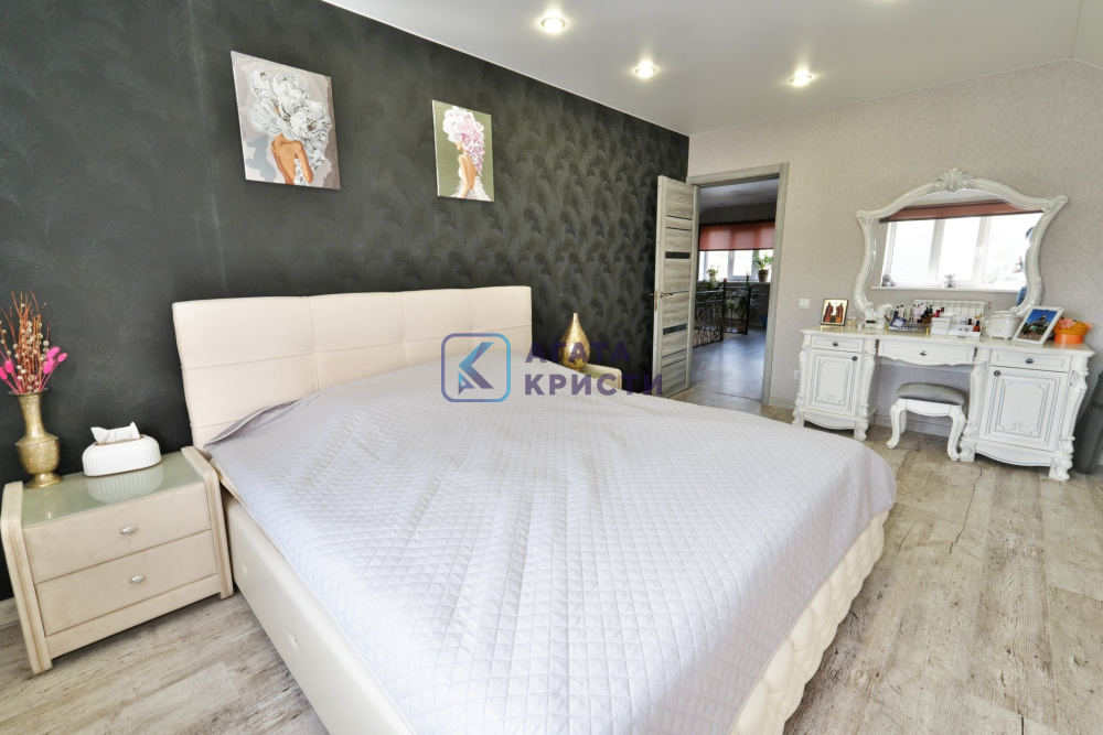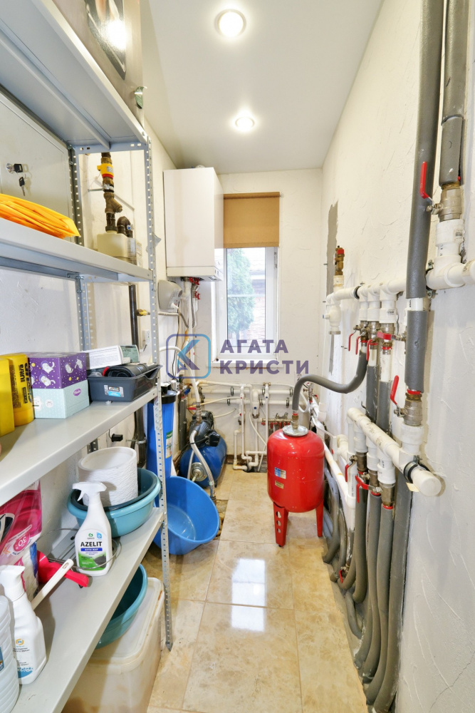 Дом на железобетонном монолитном фундаменте, материал стен газосиликатные блоки + утепление по фасаду + штукатурка и декоративный камень. Удобная планировка - на первом этаже - просторная кухня-гостиная, большая спальня с выходом на заднюю часть участка, котельная, совмещенный санузел, лестничный холл. На втором этаже большой коридор с гардеробной, две спальни и санузел.