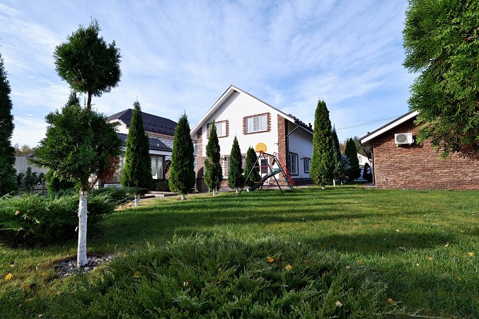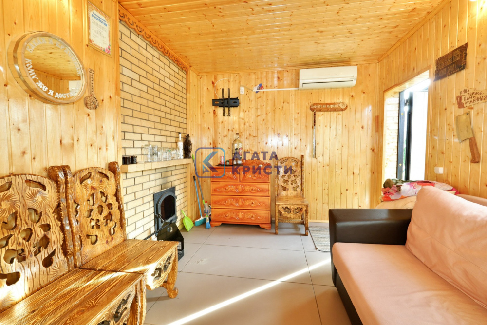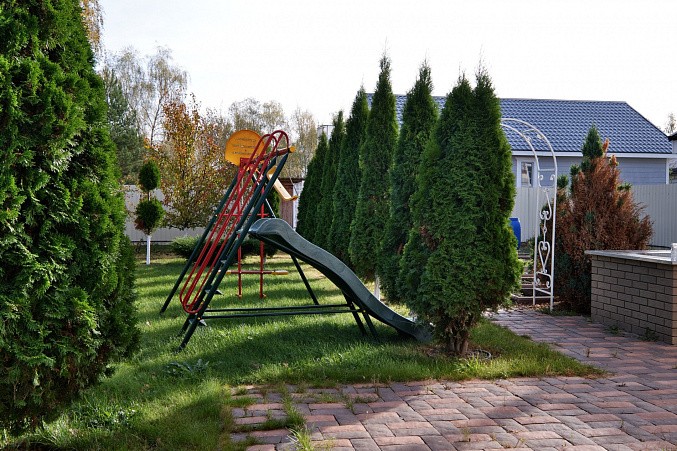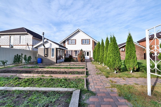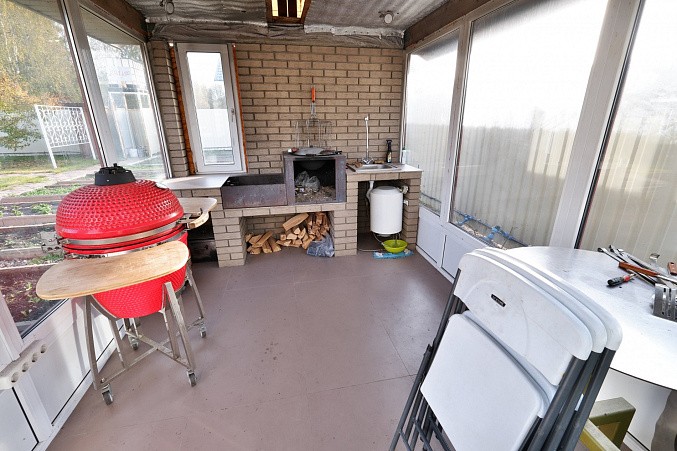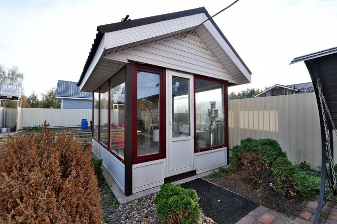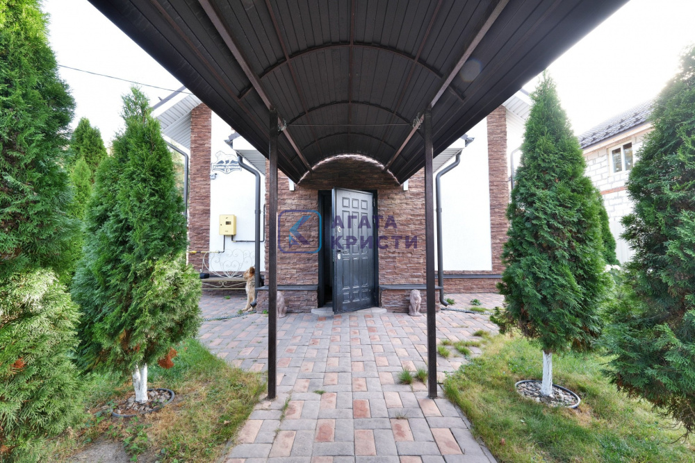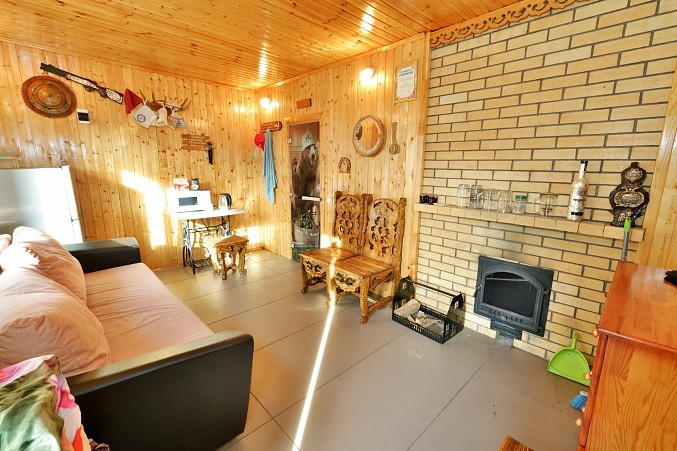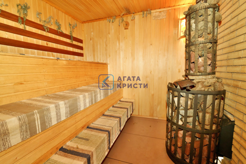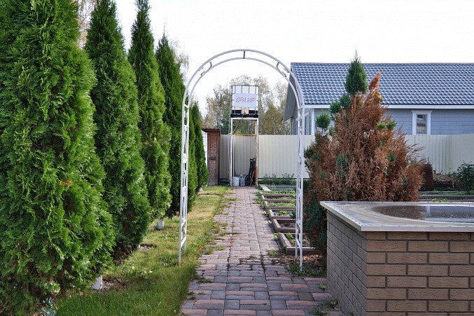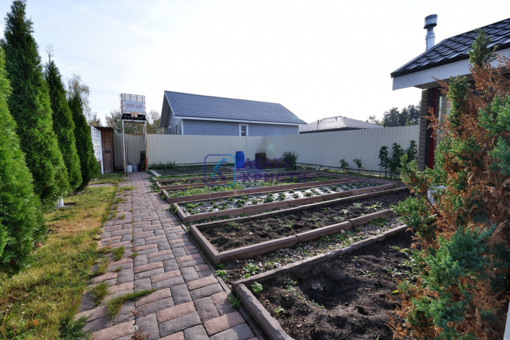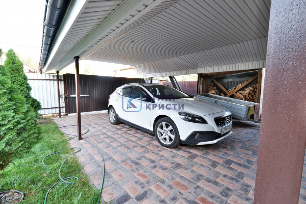 На участке дом 135.2 км, гараж, баня 64.1 кв.м, навес для автомобиля, большой вольер для собаки, крытая застекленная беседка с мангальной зоной и барбекю.