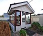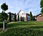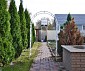 На участке отдельностоящая беседка с мангалом и барбекю. На участке много зеленых декоративных насаждений, туи, аккуратные грядки.