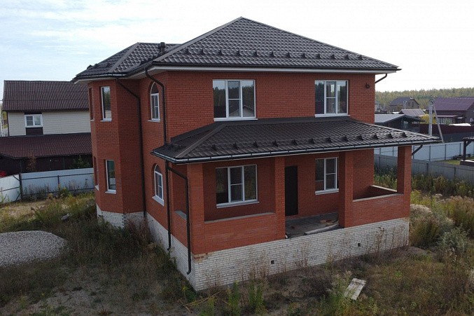 Дом на железобетонном фундаменте, первый и второй этаж - плиты перекрытий! Построен из кирпича, утеплен. Подключена электроэнергия 15 кВт, выполнена разводка электрики по дому. Установлены качественные энергосберегающие окна Rehau. Крыша покрыта металлочерепицей Grand Line. Объемный двухсекционный канализационный отстойник.