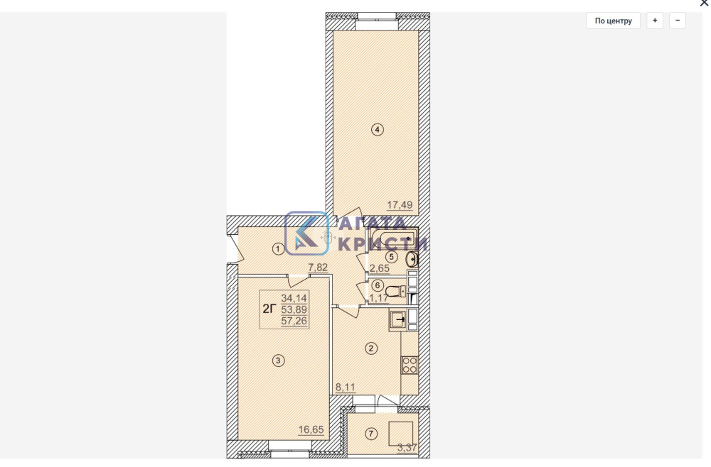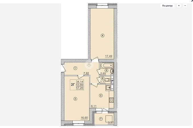 Площадь квартиры с учетом лоджии 57.3 кв.м.