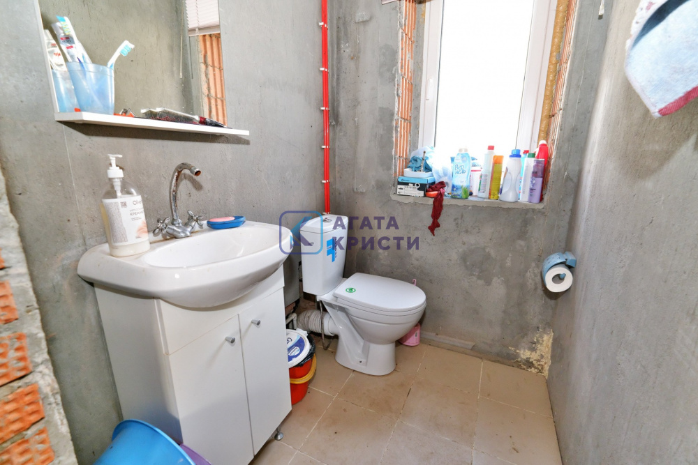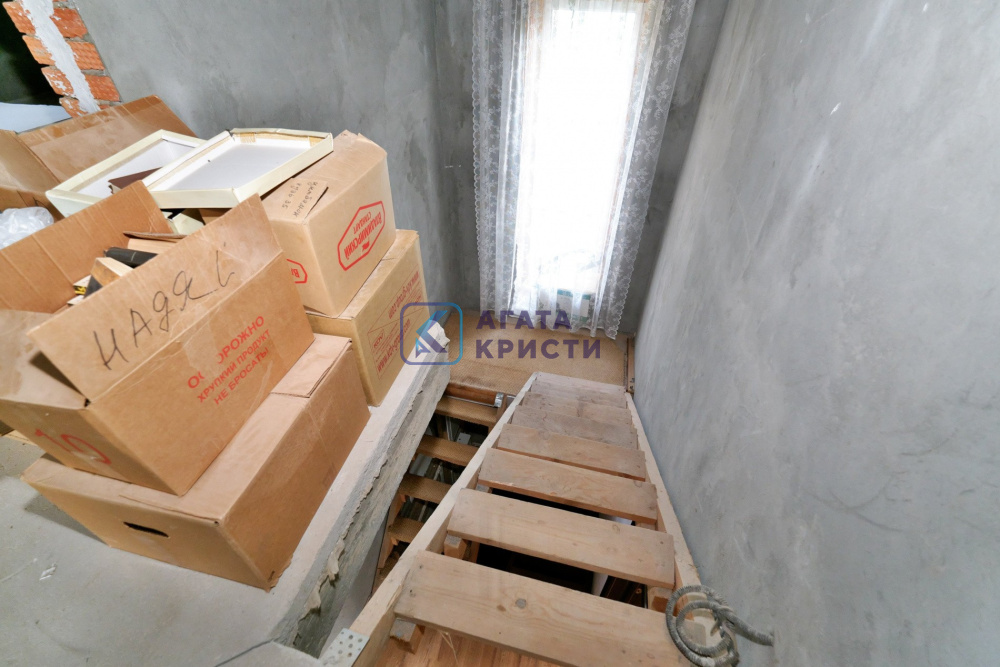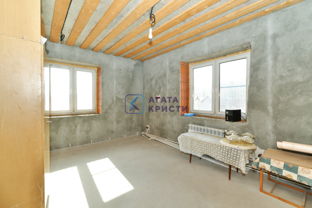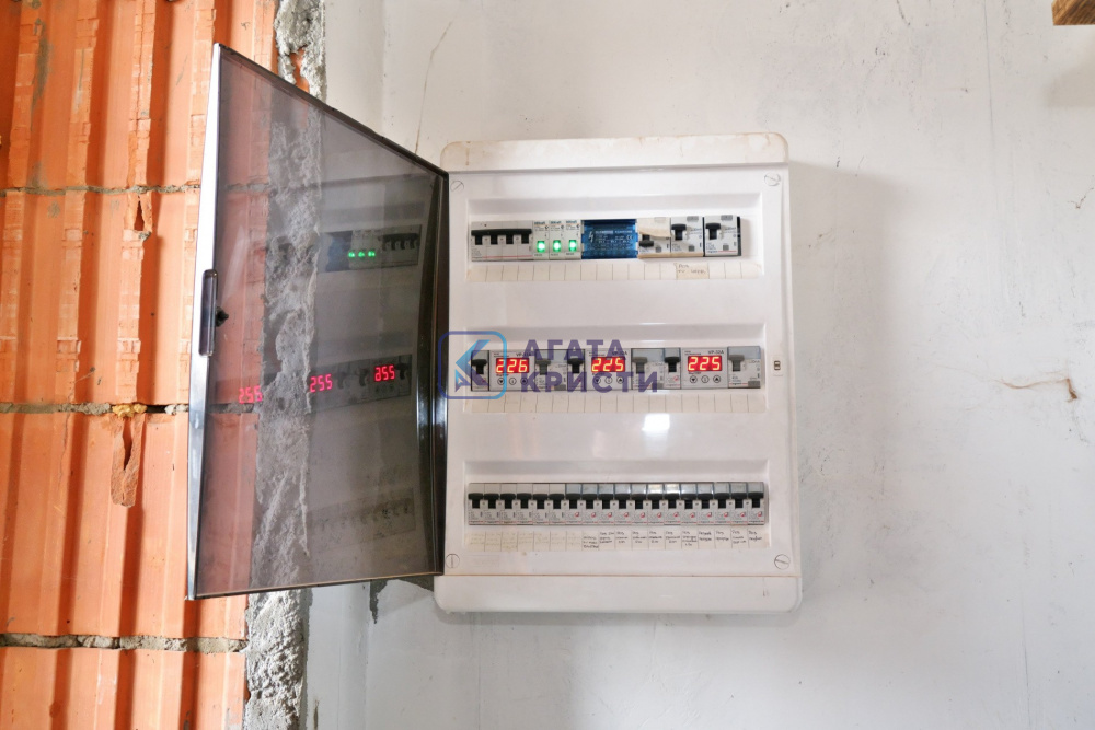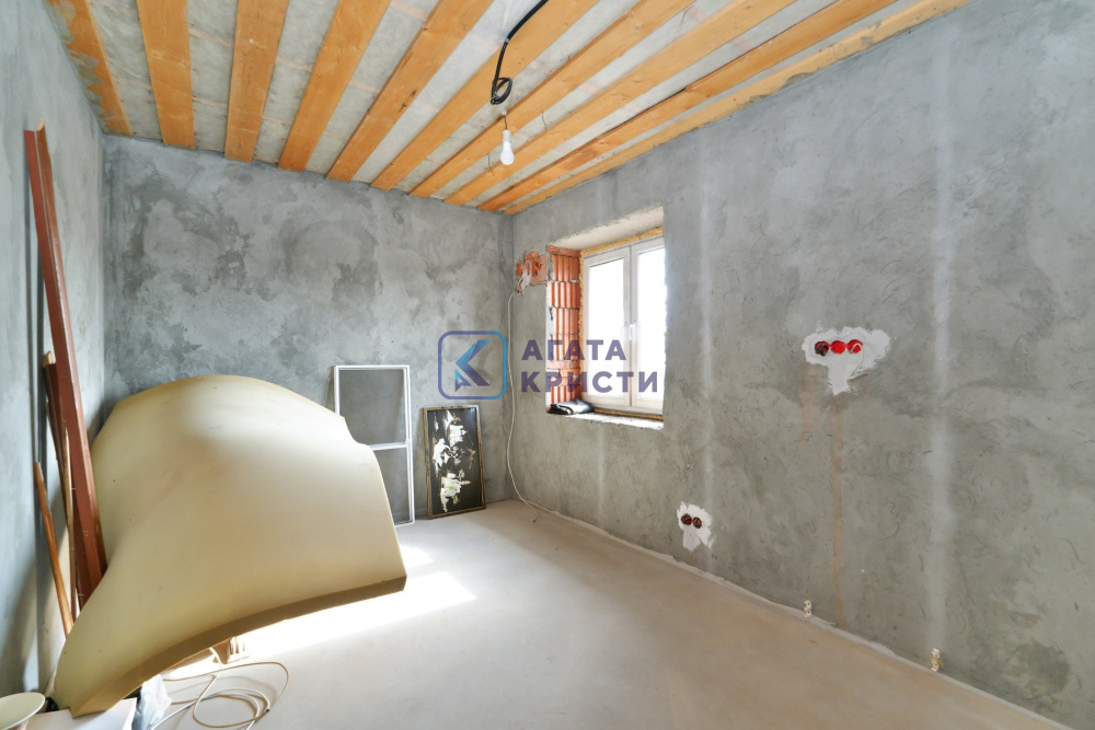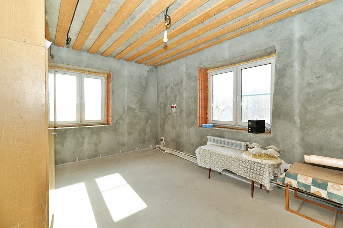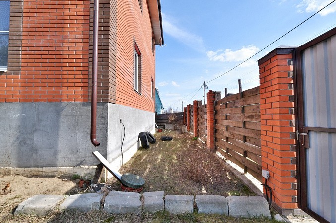 На участке дом на железобетонном фундаменте. Материал стен керамические блоки + утеплитель + облицовочный кирпич. Дом построен в 2019 году. Межэтажные перекрытия – железобетонные плиты. Удобная планировка дома – на 1 этаже кухня, санузел и две комнаты. На 2 этаже – две комнаты, гардеробная и большой санузел. Также есть цокольный этаж – расположено техническое помещение с оборудованием, мастерская и кладовая. Материал кровли – металлочерепица. Выполнена разводка электрики по всему дому – мощность 15 кВт. Включено и разведено отопление – твердотопливный котел. Водоснабжение – колодец, вода заведена в дом. Канализация – септик Топаз. Выполнен качественный дренаж по периметру дома – дополнительное осушение участка от поверхностных вод в весенний период.