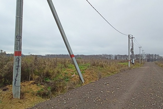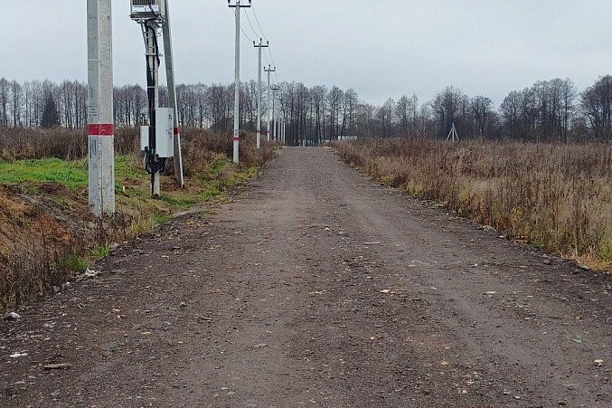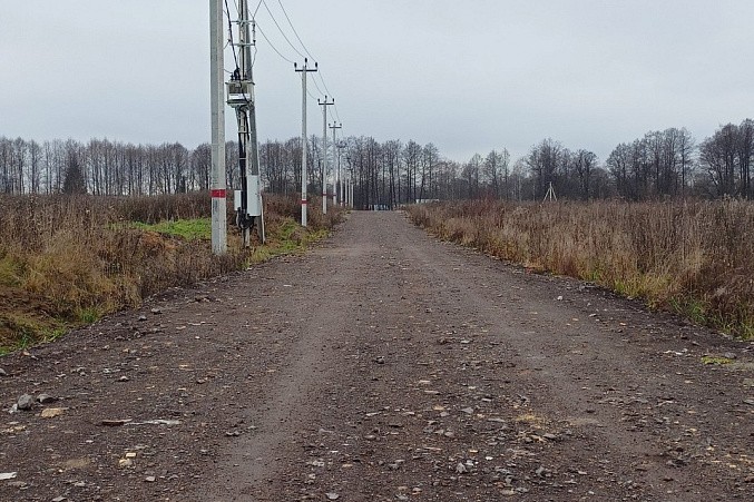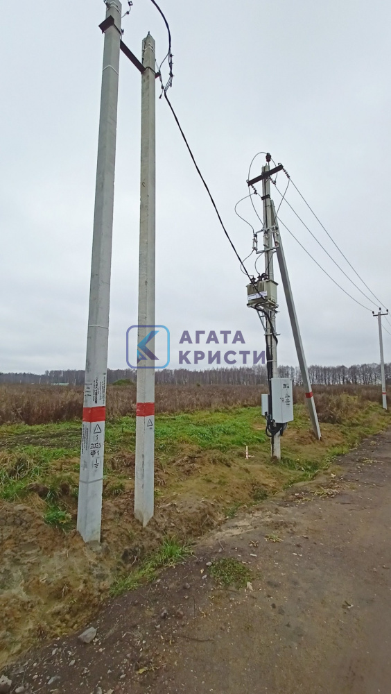 Участок прямоугольной формы, без подтопления, межевание сделано. Энергоснабжение по границе: установлены столбы и трансформатор. В поселке дорога отсыпана, два подъезда к участку, территория открытая.