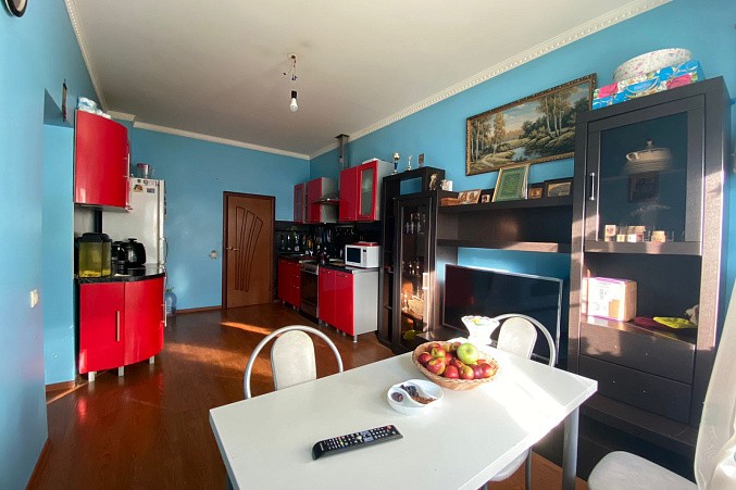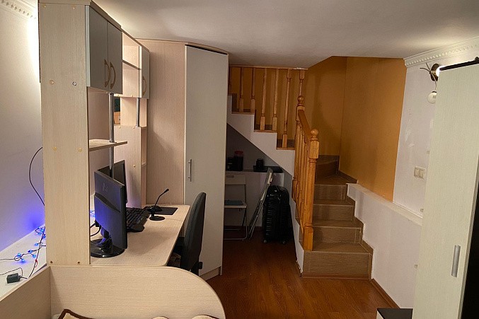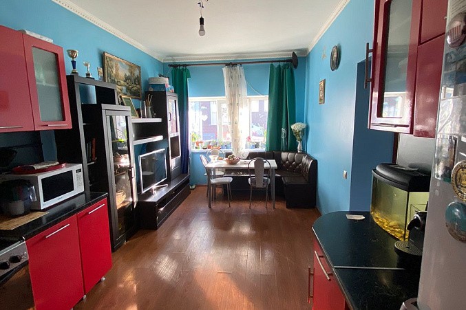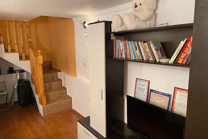 Продается двухкомнатная квартира на первом этаже + цокольный этаж, общая площадь 58.3 кв.м. 1-й этаж: кухня-гостиная, комната, санузел, цокольный этаж: комната, санузел. Квартира ухоженная с ремонтом, окна выходят во двор. Имеется свое парковочное место, также место для хранения личных вещей.