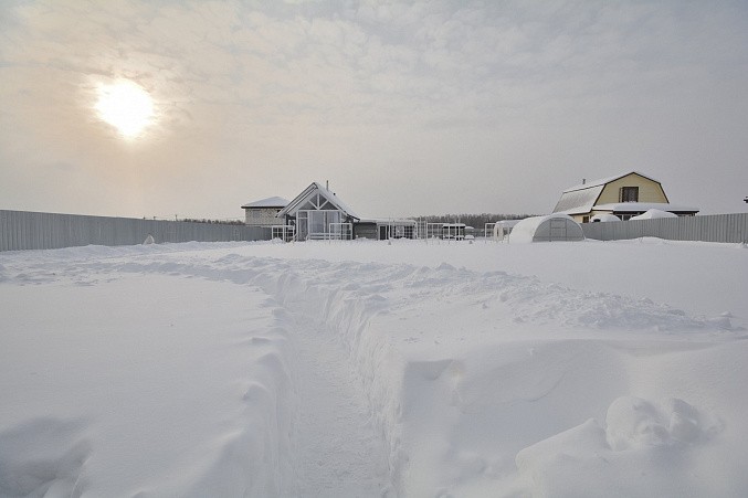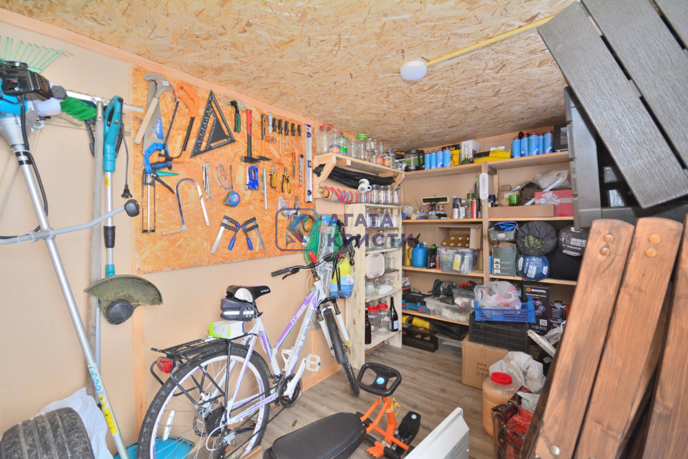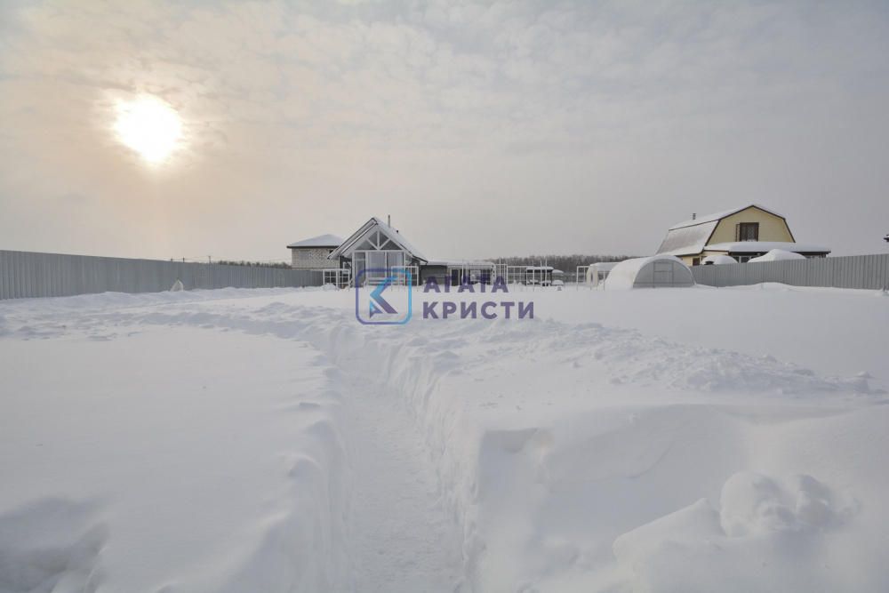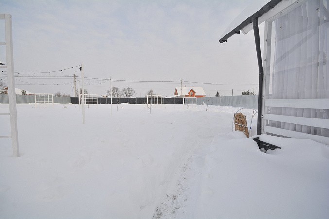 Участок правильной прямоугольной формы, сухой находится на возвышенности. Участок облагорожен, есть теплицы, плодовые насаждения, имеется зона отдыха. В передней части осталось достаточно места для строительства второго дома.