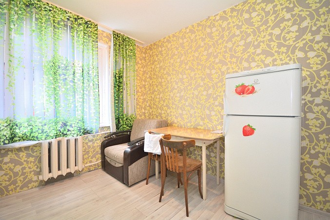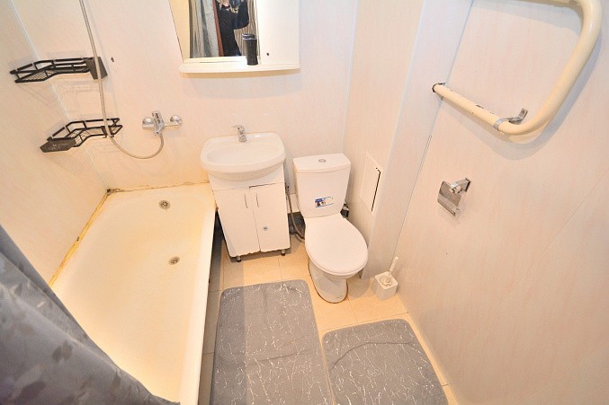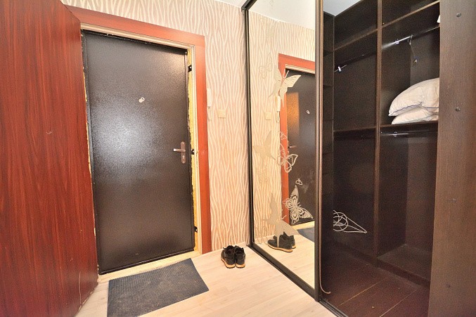 Просторная комната с выходом на лоджию, кухня 9 кв.м., санузел совмещенный, в прихожей установлена просторная гардиробная.