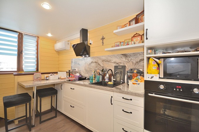 На втором этаже раздельный санузел, кухоная зона, комната.